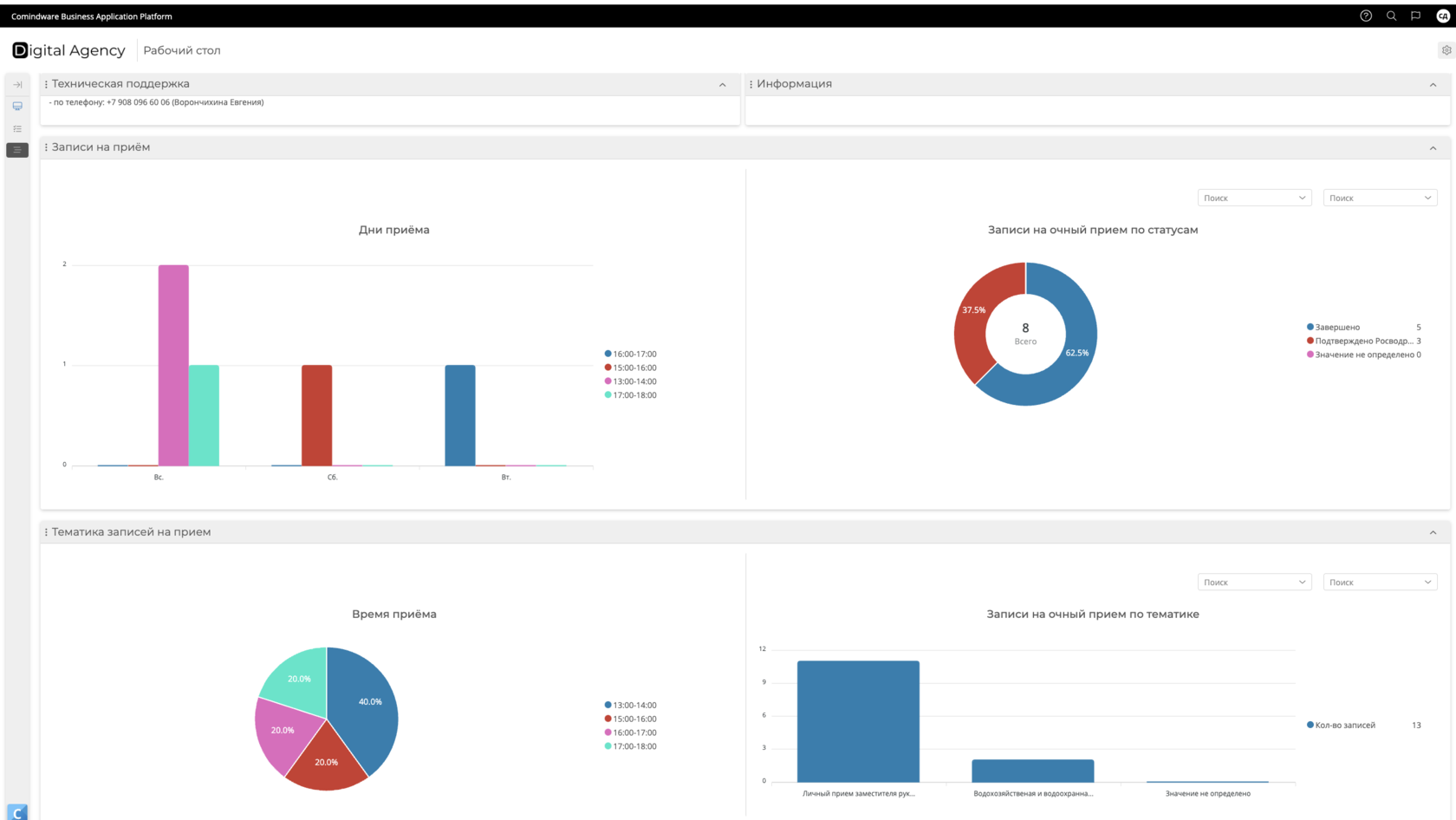 Удобные дашборды, графики, возможность детализации сведений по приёму граждан