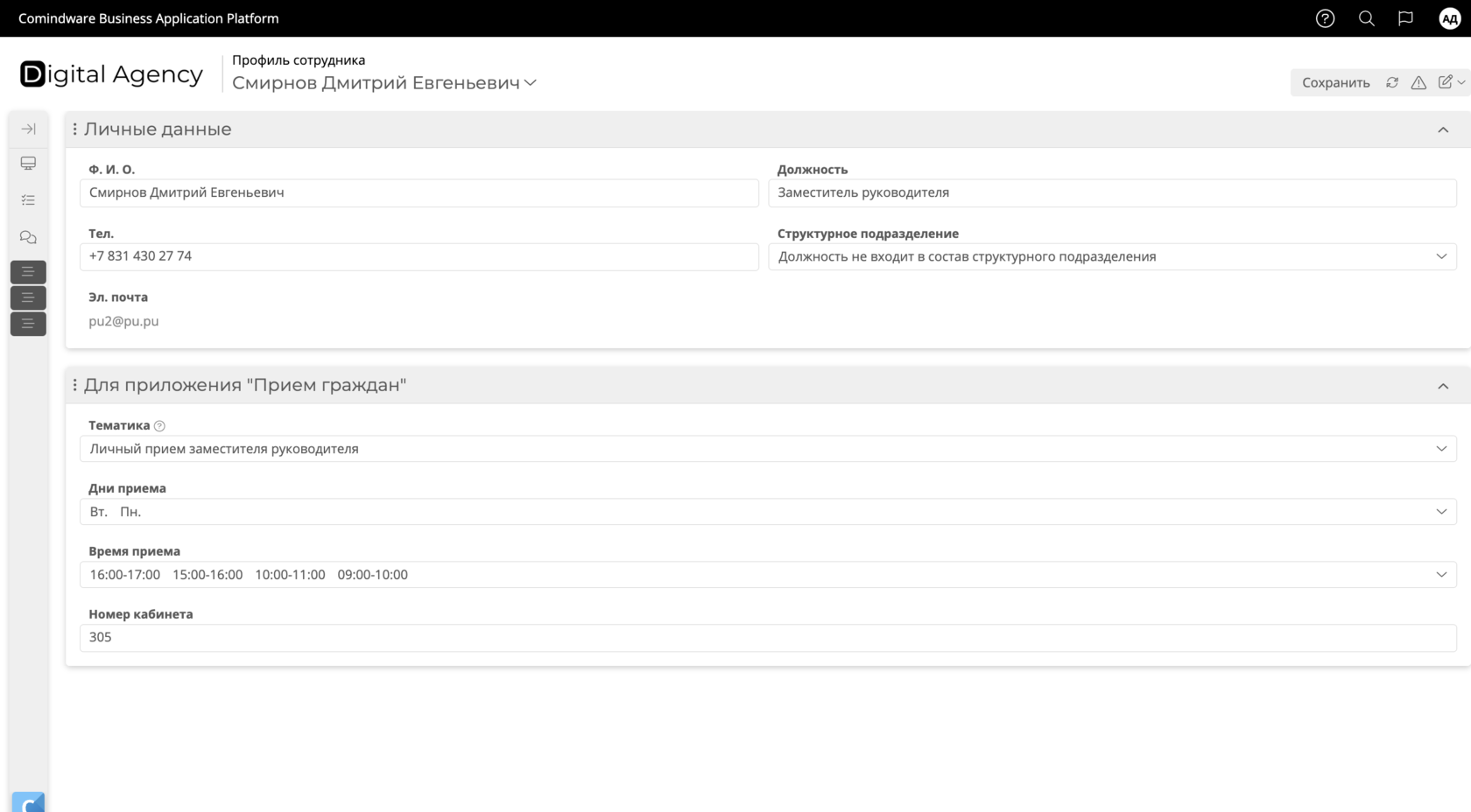 заполнение профиля сотрудника: доступные тематики и график приема