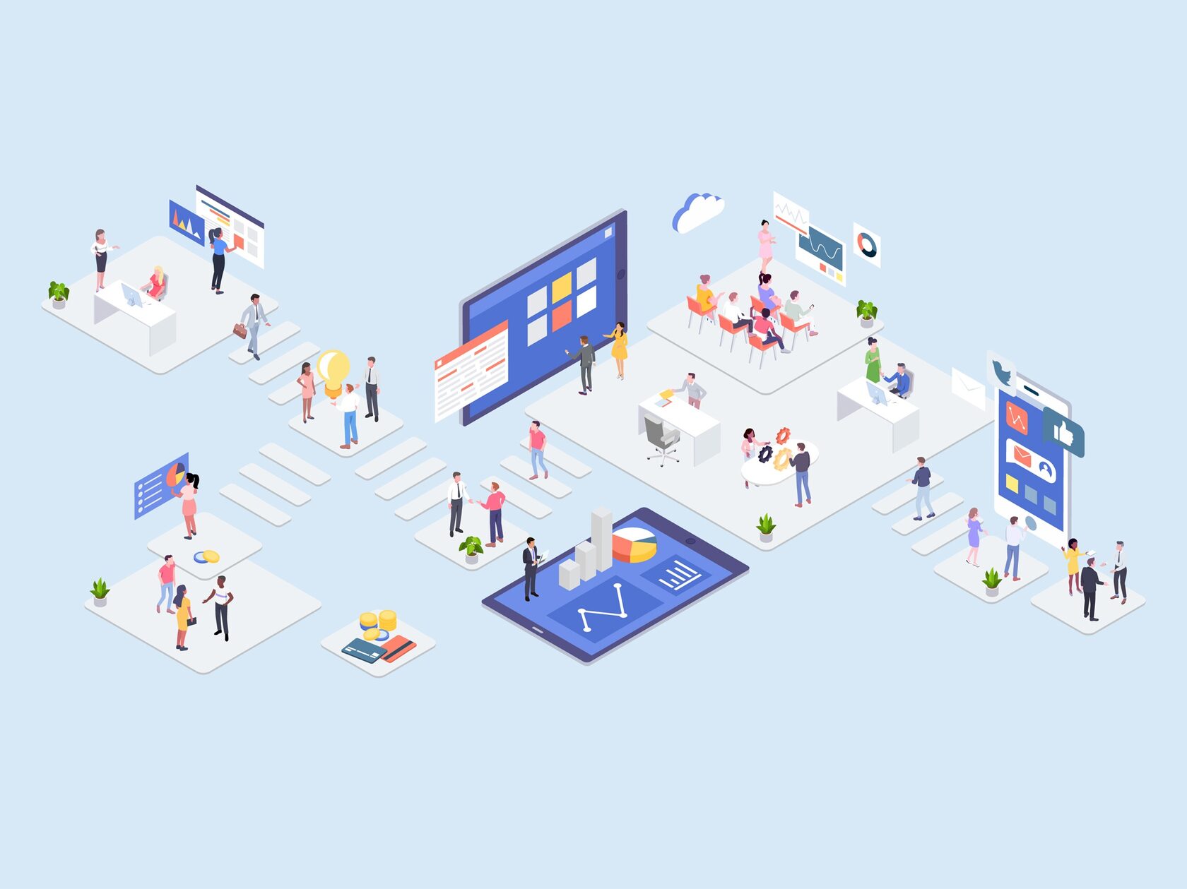Разработаны интерактивные схемы офисных помещений, размечены шаблоны печатных форм, подключен платежный шлюз, настроены интеграции и иные работы по внедрению
